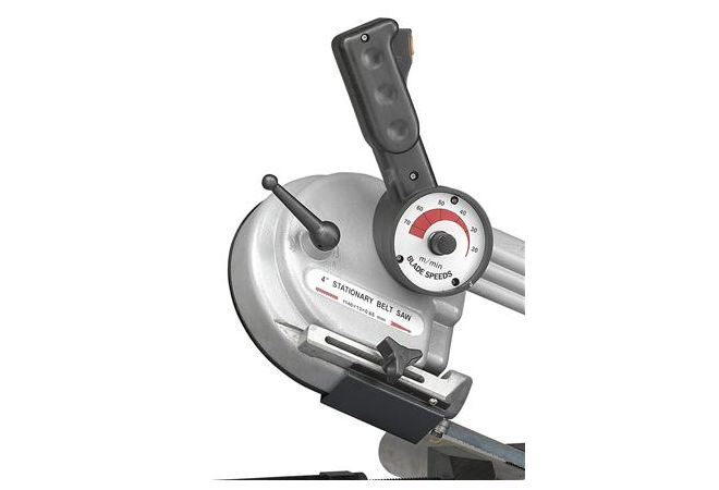 De kleine metaalbandzaagmachine EBS 100 B met eenzijdige verstekzaagmogelijkheid. De elektronisch geregelde bandzaagsnelheid maakt dat deze machine voor vele materiaalsoorten inzetbaar is.