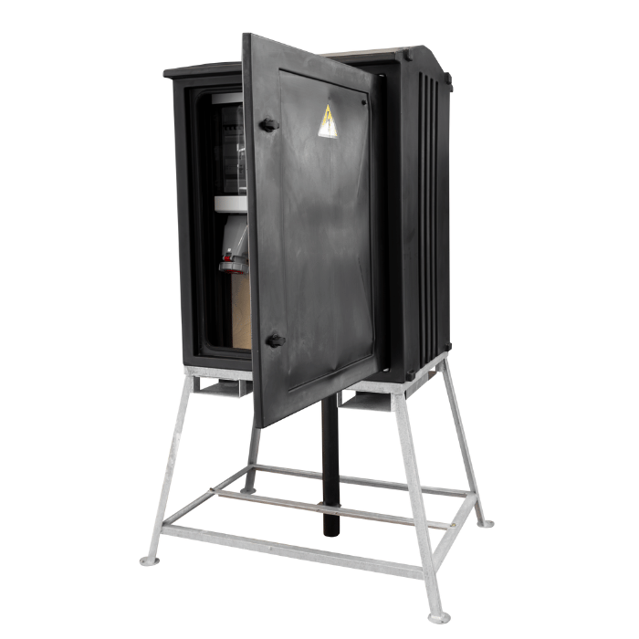 - Onderhoudsvrije kunststof bouwmeterkast voor tijdelijke energieaansluiting op de bouw.
