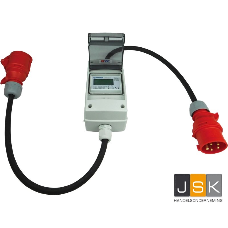 16A CEE - mobile digital electricity meter - calibrated - (with reset) IP44, 16A CEE 5-pin plug to 16A CEE 5-pin socket