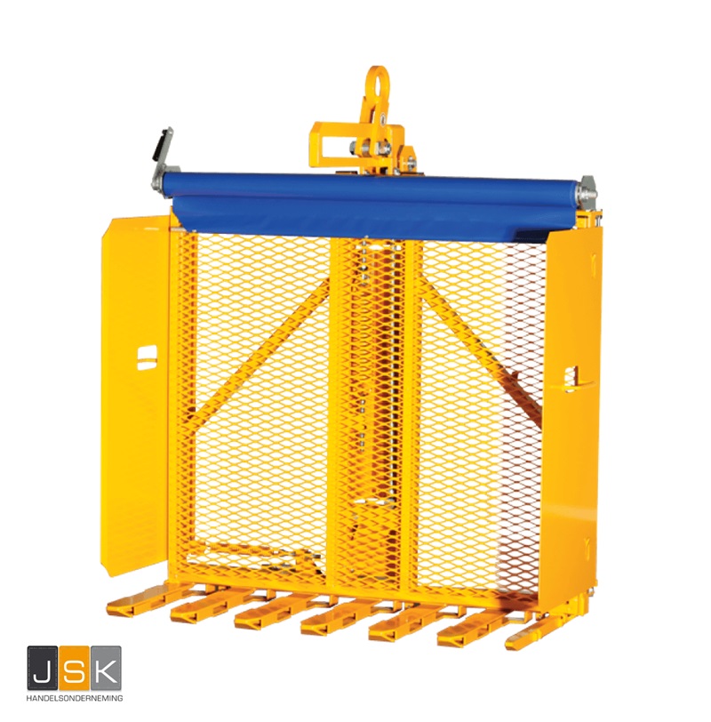 - Het beschermrek aan de achterzijde van de mechanische gevelsteentang is voorzien van handvaten, zodat het risico op beknelling geminimaliseerd wordt.