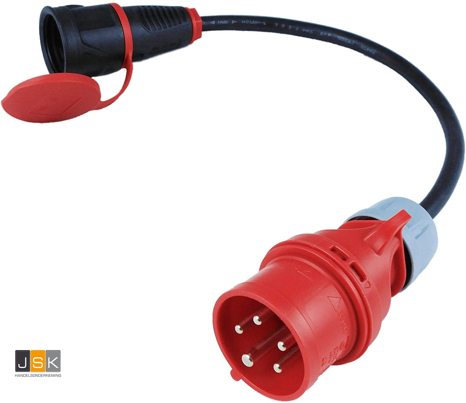- stekker: CEE-stekker 32A, 5-polig, 400V, 6h