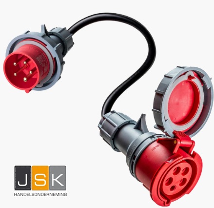 - Krachtstroom adapter 400V met CEE-stekker 32A (mannelijk) naar CEE socket 16A (vrouwelijk)
