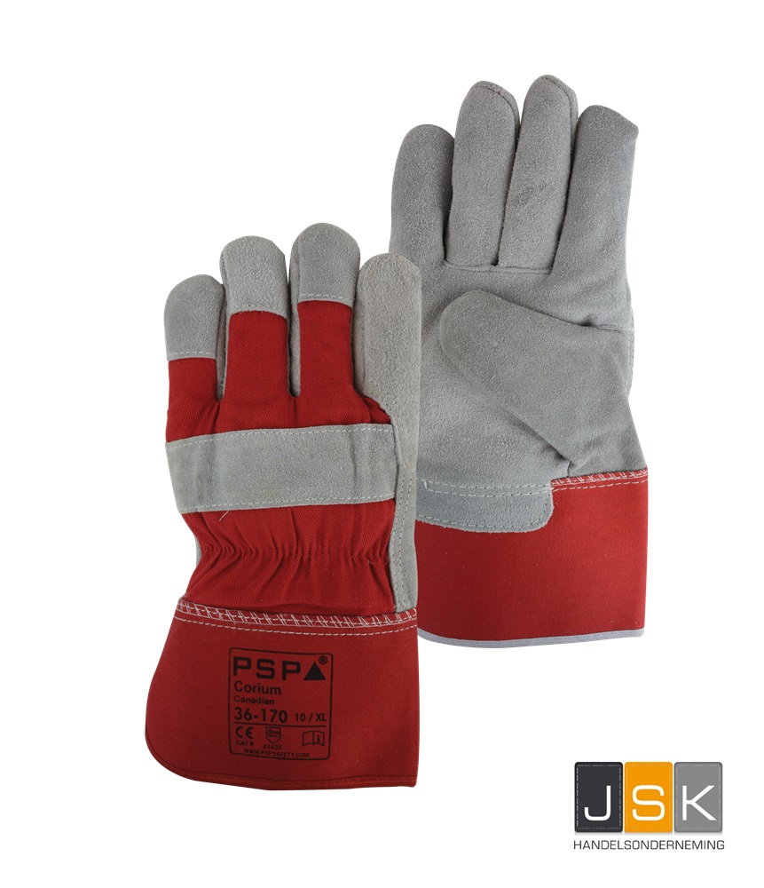 De PSP Corium Canadian 36-170 is een werkhandschoen, type “Amerikaantje”, gemaakt van eersteklas rundsplitleder.