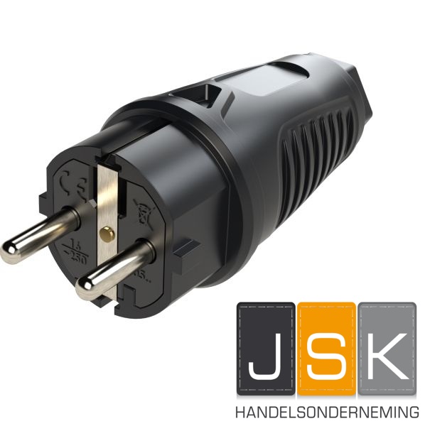 Actie 10 stuks Volrubber stekker zwart, voor aansluitdiameter tot 3G2,5 mm², nominale spanning: 250V~ nominale stroom: 16A, Beschermingsklasse: IP54, Kleur: Zwart