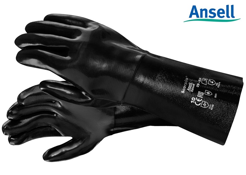 Ansell Scorpio 09-924 werkhandschoenen zijn geschikt om kortstondig te gebruiken in hete vloeistoffen tot 180°C en in een koude omgeving tot -25°C en beschermen tegen diverse chemicaliën.