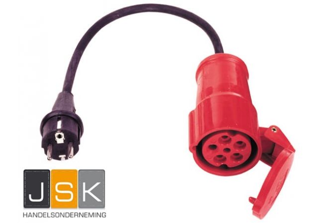 Met deze 1 fasig standaard Schuko naar CEE 3 fase adapter maakt u dus van een 1 fasig standaard stopcontact een CEE 3 fasig stopcontact. Let op! U heeft zeker geen 3 actieve fasen in de rode stekker ter beschikking. In de rode stekker is 1 van de 3 fasen actief, dus u kunt altijd slechts 1 fasig aansluiten.