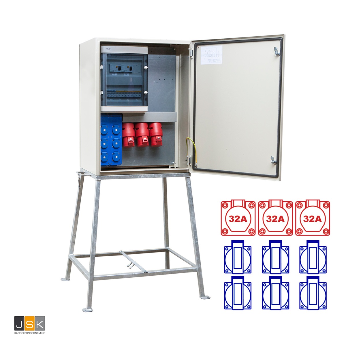 Bouw aansluitkast 80A kWh | KEM8001 | 1x CEE 63A 5p 380V | 2x CEE 32A 5p 380V | 6x schuko 16A 230V | 105448