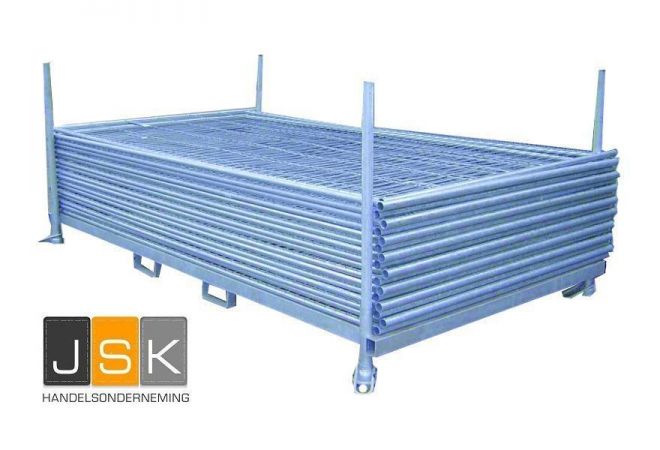 Stapelrek is speciaal ontworpen voor het opslaan en vervoeren van 25 stuks bouwhekken. Prima stapelbaar, verzwaarde uitvoering, gegalvaniseerd en voorzien van sleufgaten.