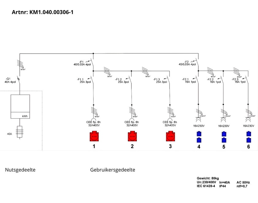 63A Bouwmeterkast KANTO 2.0 2x 32A, 6x Schuko