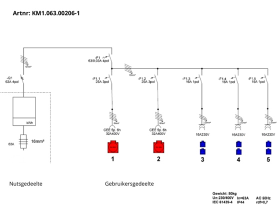 - Aantal CEE-contactdozen 32 A/400 V/5P: 2