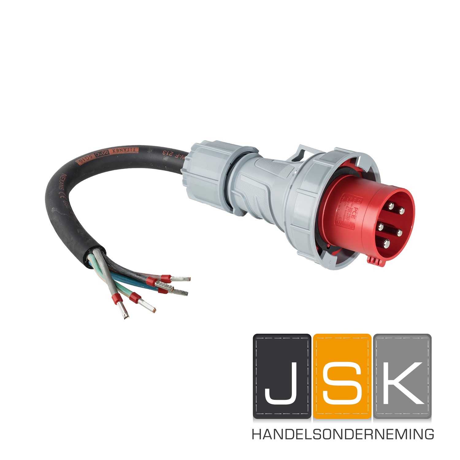Topkwaliteit aansluitkabel met 5-polig 63A CEE 400V contactmateriaal.