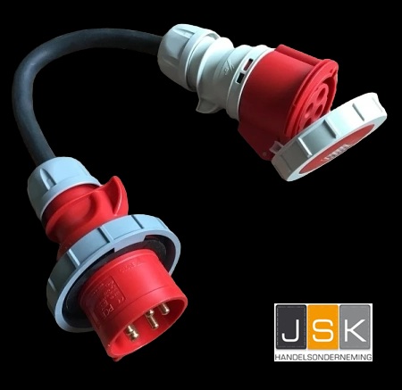 - Verloop kabel adapter van CEE-stekker 32A 5-polig 6h 400V => CEE-koppeling 32A 4-polig 3h 400V