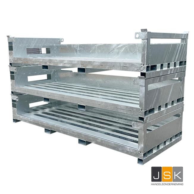 - De bouwhekbunker is geschikt om ook de bouwhekschoren, bouwhekblokken, bouwhekklemmen en de bouwhekpinnen te transporteren door middel van de individuele ruimtes in de pallet.