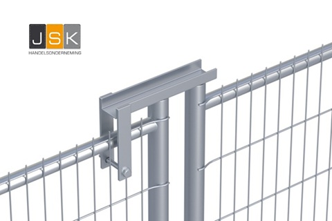Voor het eenvoudig creëren van een poort voor vrachtverkeer laat u 2 bouwhekken draaien met behulp van een scharnier en wiel. De set bestaat uit 2 metalen buisjes, 1 om in het hek te schuiven en 1 in de looppoort. Met een bout door de mat heeft u een werkende scharnier voor 2 bouwhekken of een looppoort.
