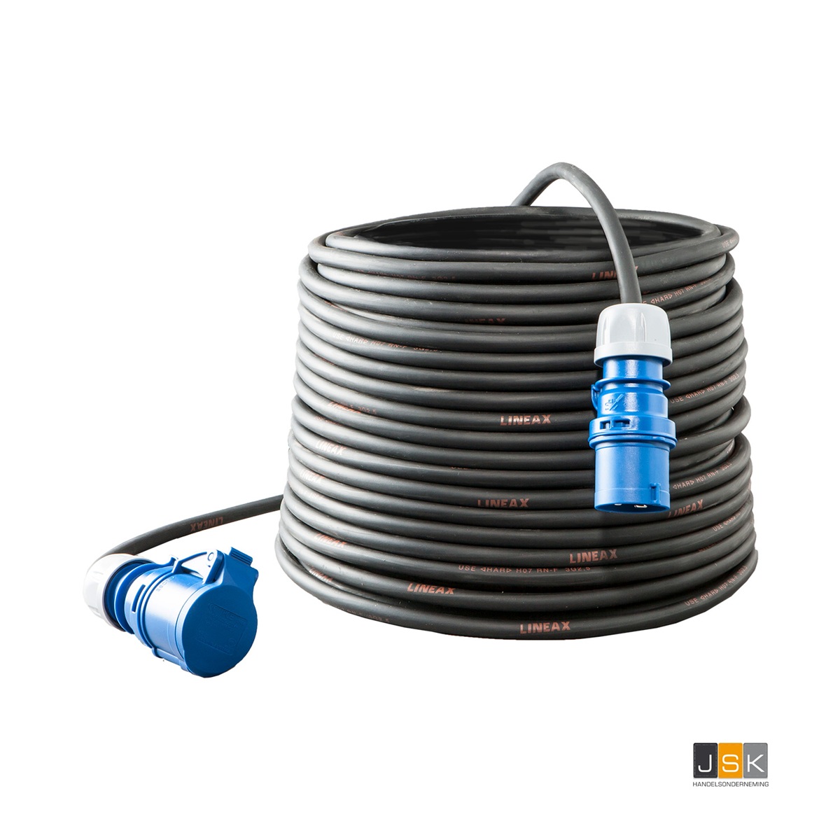 CEE 230V verlengkabels met 3 polig 32A CEE contactmateriaal.