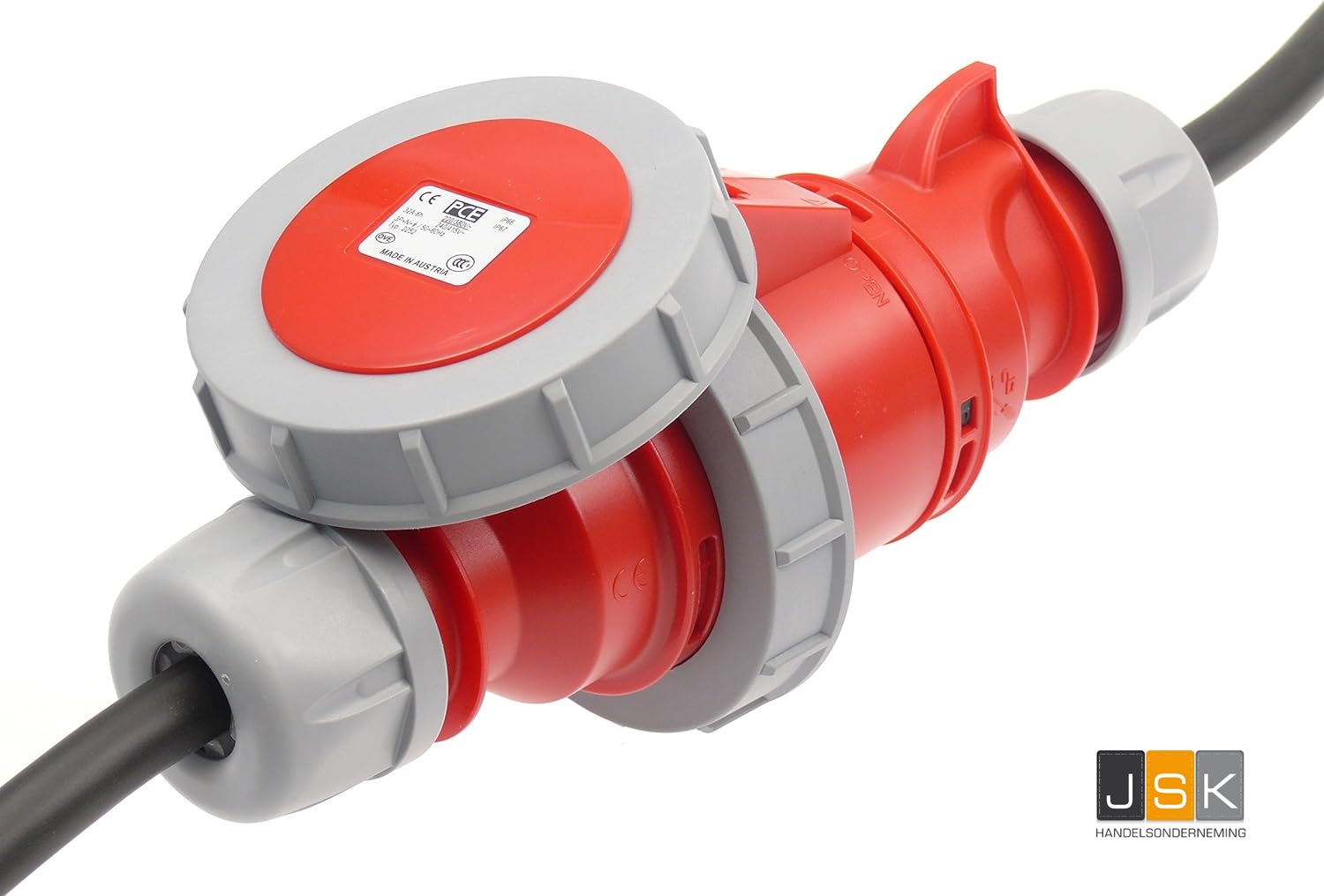 CEE 400V kracht verlengkabels met 4 of 5 polig 16A CEE contactmateriaal.