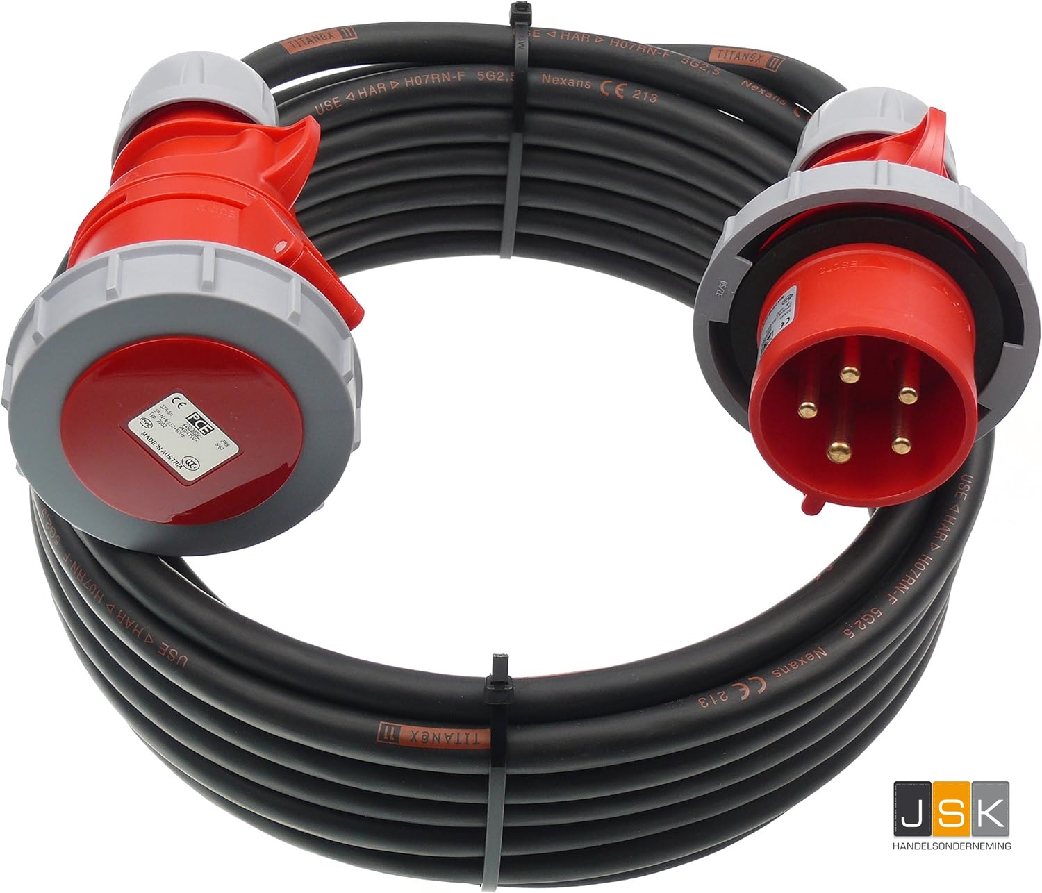 CEE 400V kracht verlengkabels met 4 of 5 polig 16A CEE contactmateriaal.