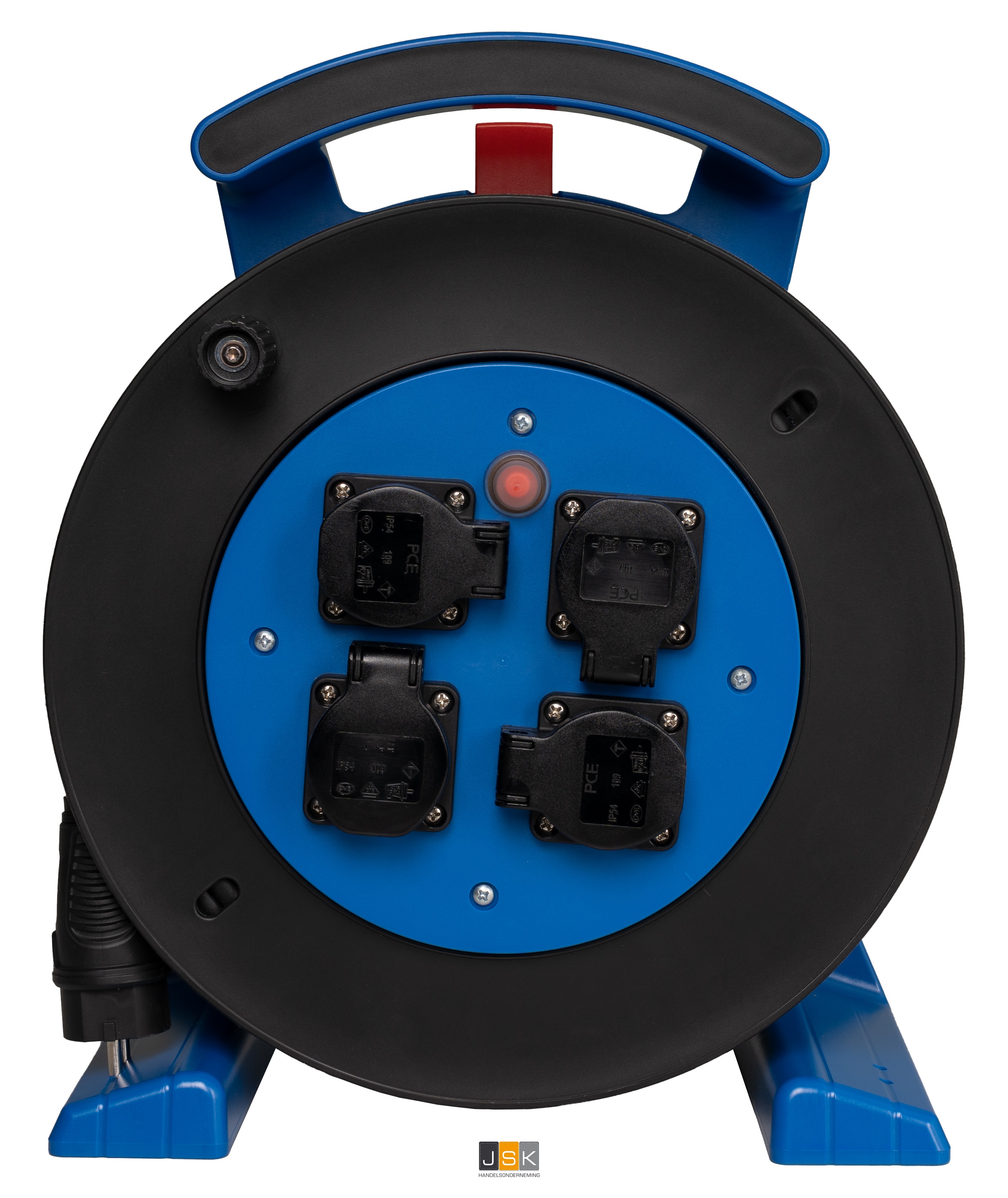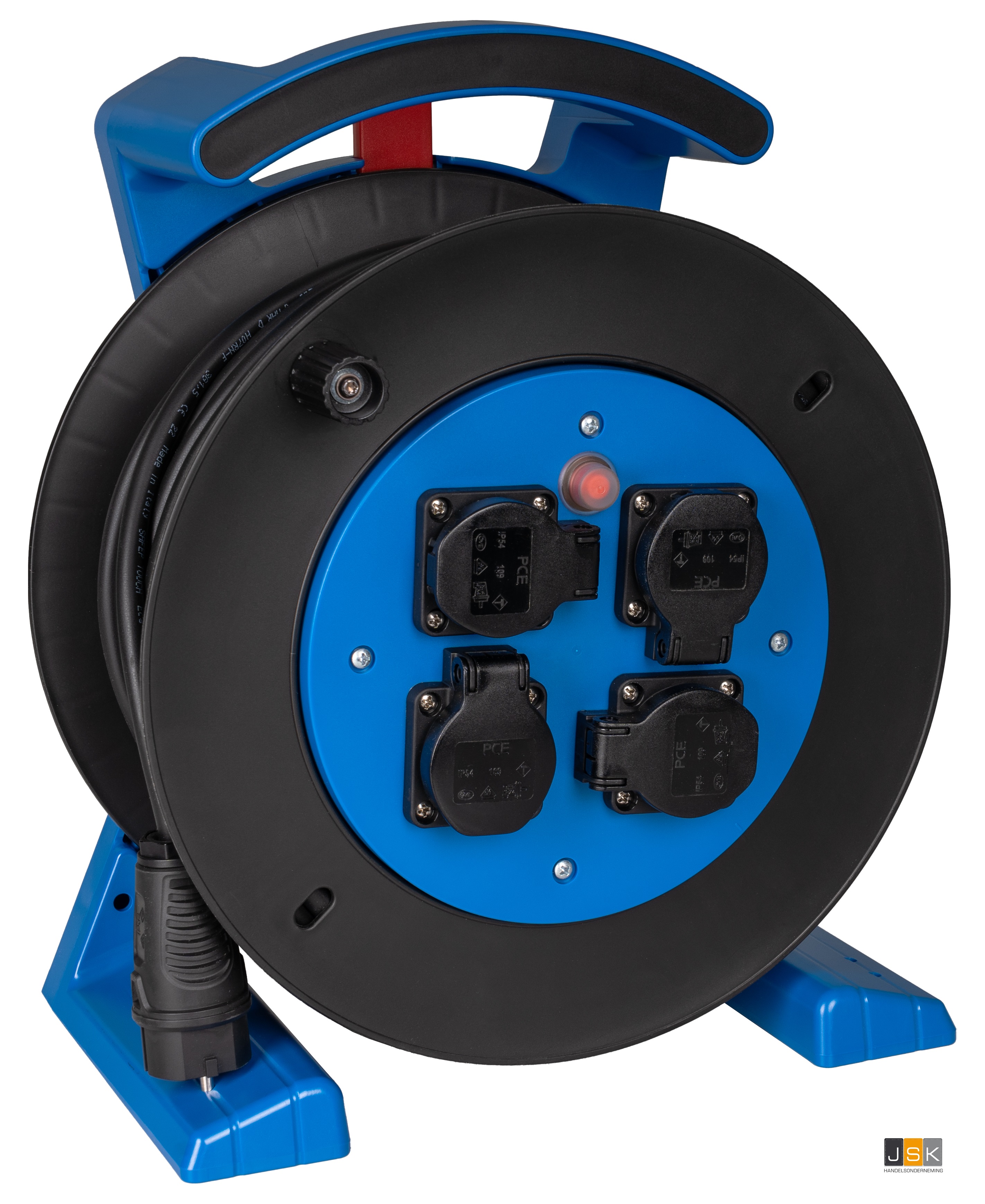 JUMBO kabelhaspel blauw-zwart 25 meter kabel, 4 contactdozen, H07RN-F 3G2,5 mm² - 2261.614.2251