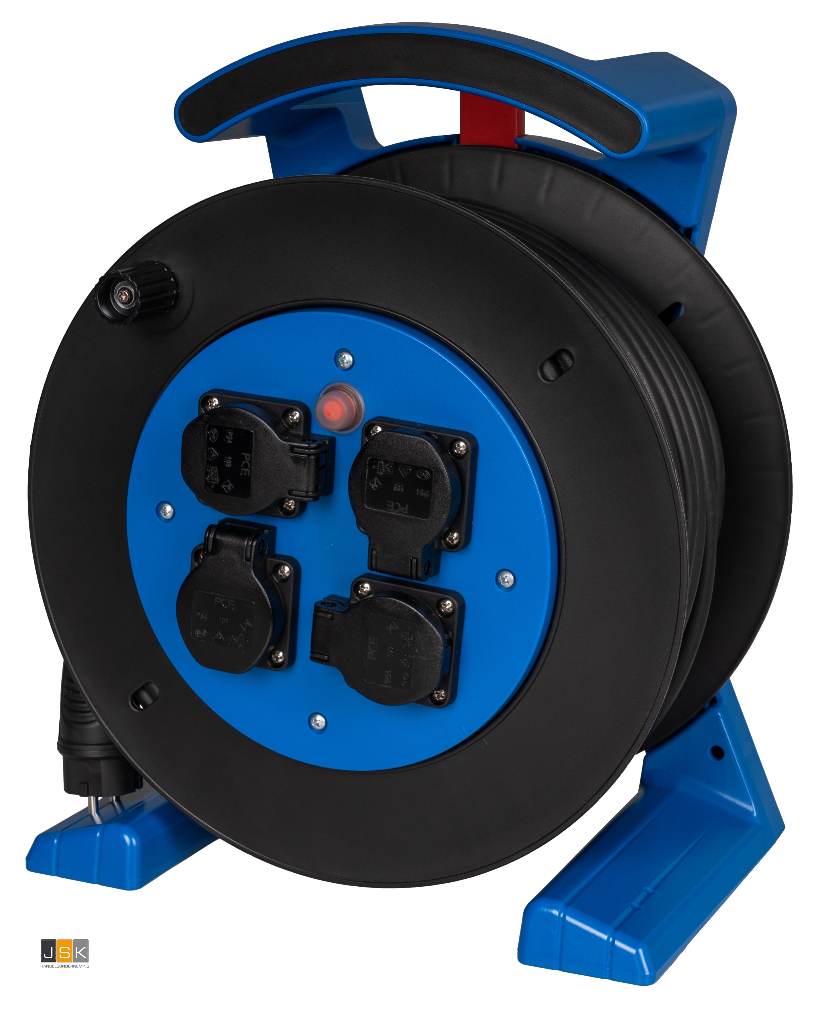 Eigenschappen van de JUMBO kabelhaspel 2.0 in blauw-zwart, 4 contactdozen, H07RN-F 3G2,5 mm², 25 m