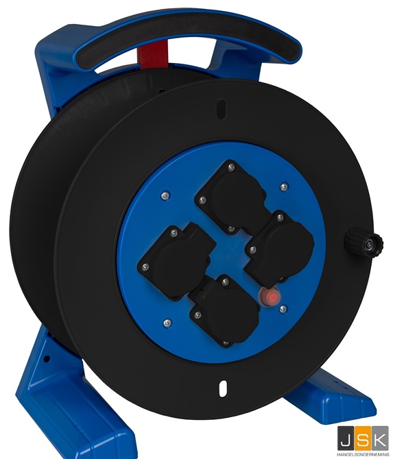 Productinformatie "JUMBO® L lege kabelhaspel met 4 contactdozen zwart/blauw Zwart"