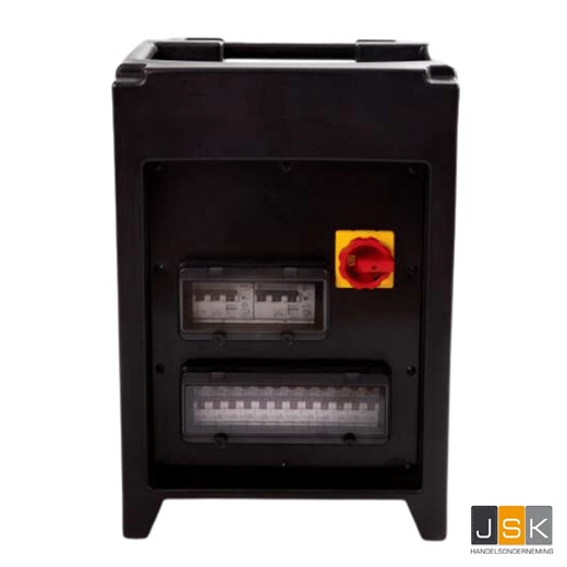 - 1 x CEE aanbouwdoos 16 A – 1 x aardlekautomaat B 16 A 3-polig + N 0,03 A