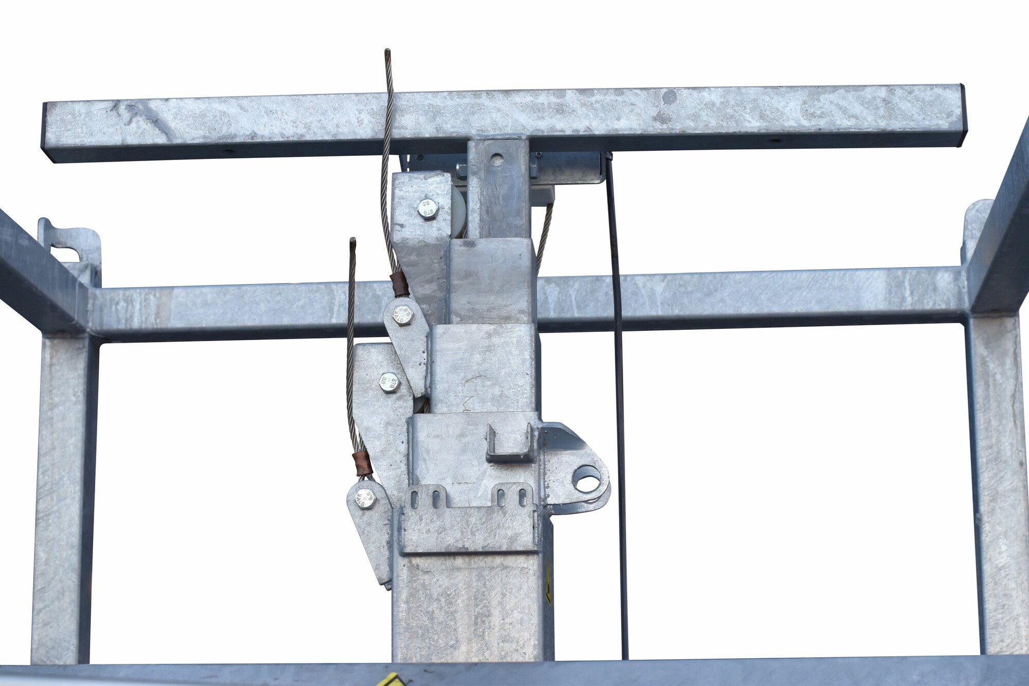 - Het frame is voorzien van heftruck sleuven én een hijsvoorziening, zodat je de mast eenvoudig verplaatst, op elk terrein.