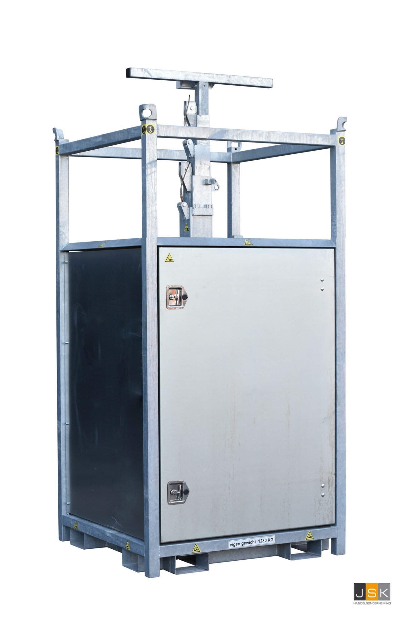 Een van de kenmerken die onze lichtmast onderscheidt, is het hoogwaardige metalen frame waarin de mast is verwerkt. Dit frame biedt niet alleen extra stevigheid, maar zorgt er ook voor dat de mast stabiel staat, zelfs onder zware omstandigheden. Dankzij de deur in het frame heb je gemakkelijk toegang tot de handlier, waarmee je de mast tot een indrukwekkende hoogte van acht meter kunt optakelen.