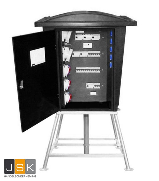 Meterverdeelkast 125 Ampère | PKI125 | 2x CEE 63A 5p 380V | 3x CEE 32A 5p 380V | 6x schuko 16A 230V | 1x keetaansluiting | 107010