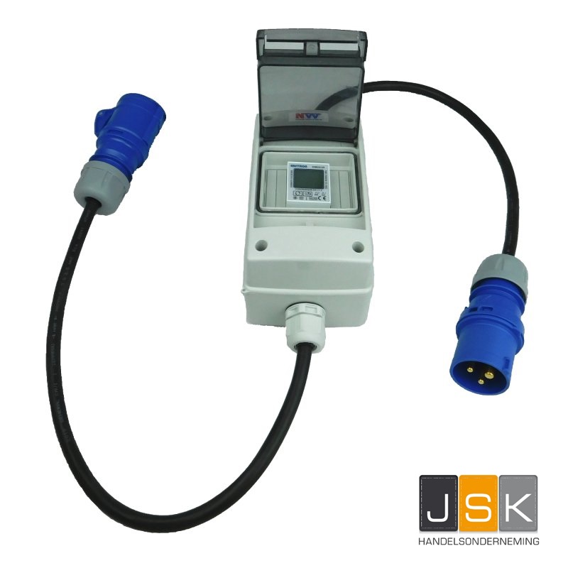 Plug & Play stroommeting: Mobiele camping-elektriciteitsmeter 230 V / 16 A voor nauwkeurige verbruiksregistratie – ideaal voor werkplaatsen, bouwplaatsen en tijdelijke installaties.