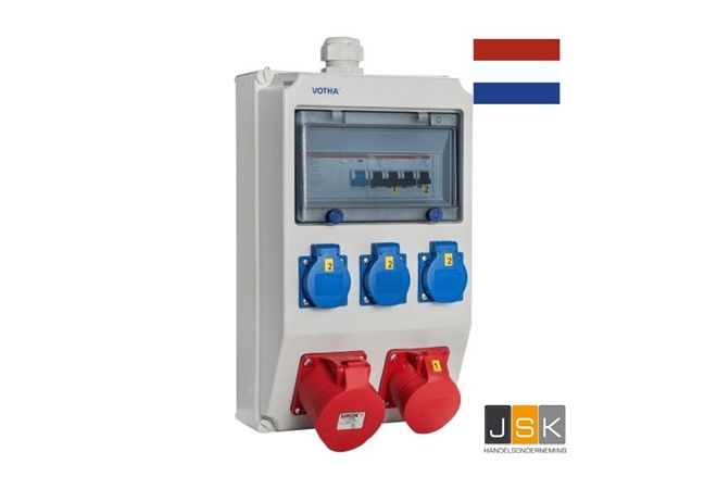 NL63.113.0111 VOTHA WOLFSBURG wandverdeler - bedraad met 1x CEE 32 A, 1x CEE 16 A, 3x WCD'S 230 V en aardlekschakelaar 40 A 0,03 A (4P)