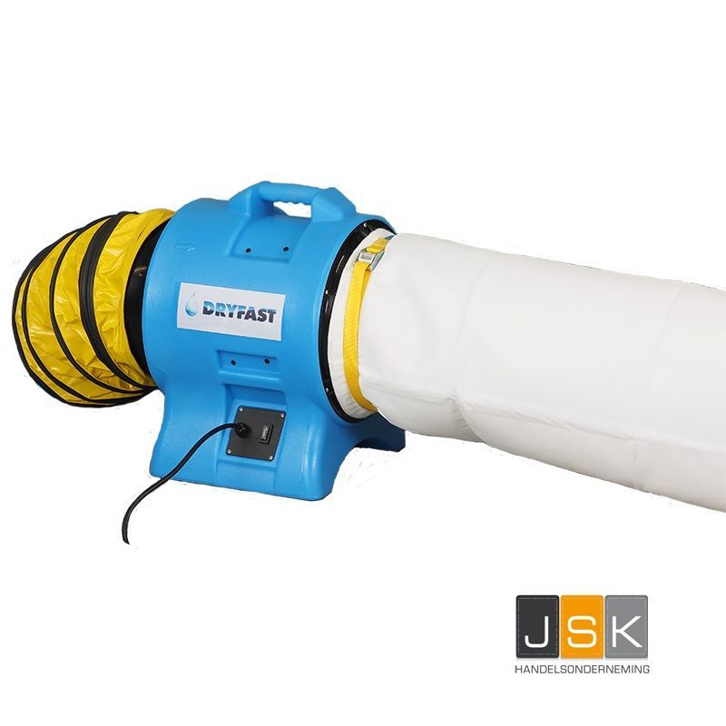 Dryfast draagbare, stapelbare axiaal ventilator speciaal ontwikkeld voor het afvoeren van kwalijke gassen en stof in de bouw en industrie. Door de druk van 295 Pa is deze axiaal ventilator uitermate geschikt voor toepassingen met grotere slanglengtes (tot 20 meter ø 300 mm) en onze stofzakken.