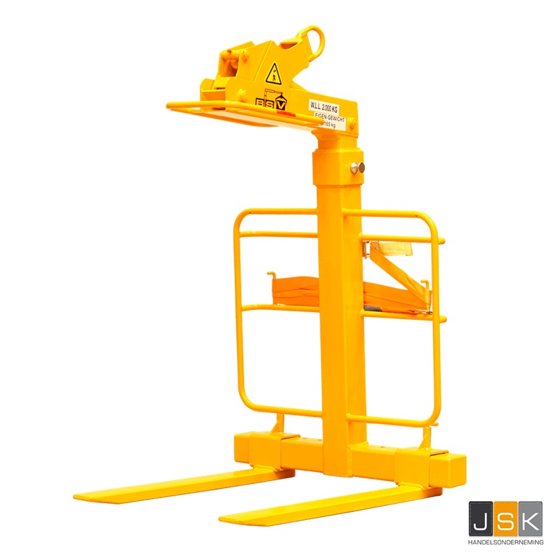 De BSV zelfbalancerende pallethaak met een capaciteit van 2 ton wordt standaard geleverd met vorken met een lengte van 970 mm. Daarnaast zijn er optioneel nog twee types vorken beschikbaar: de poriso vorken (750 x 60 x 60 mm) en de vorken ten behoeve van pallets gevelstenen (420 x 150 x 20 mm).