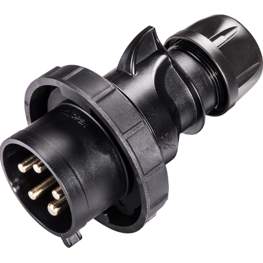 Productinformatie "CEE-stekker IP 67, 5-polig, 400 V, 6 h 32 A Zwart Theater"