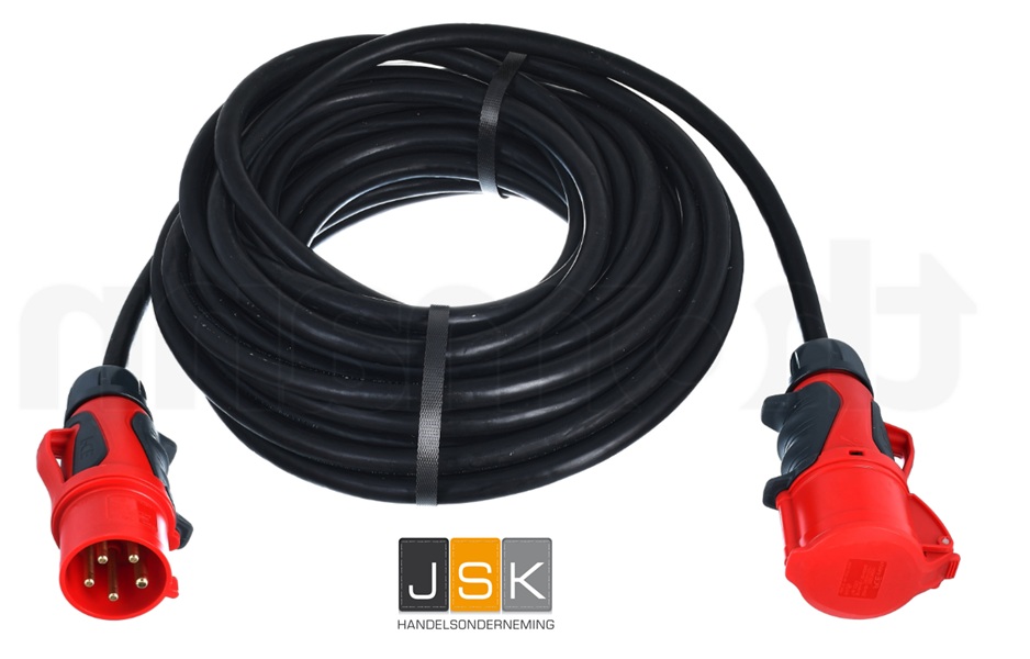 CEE 400V kracht verlengkabels met 4 of 5 polig 16A CEE contactmateriaal.