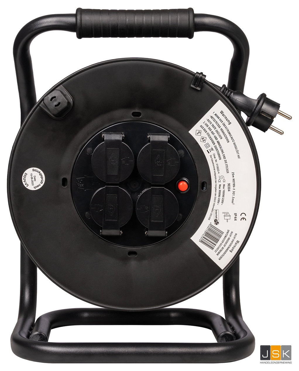 Professionele bouwhaspel / kabelhaspel, 25 meter 3G1.5 H07RN-F IP44 voorzien van thermische beveiliging - 492190