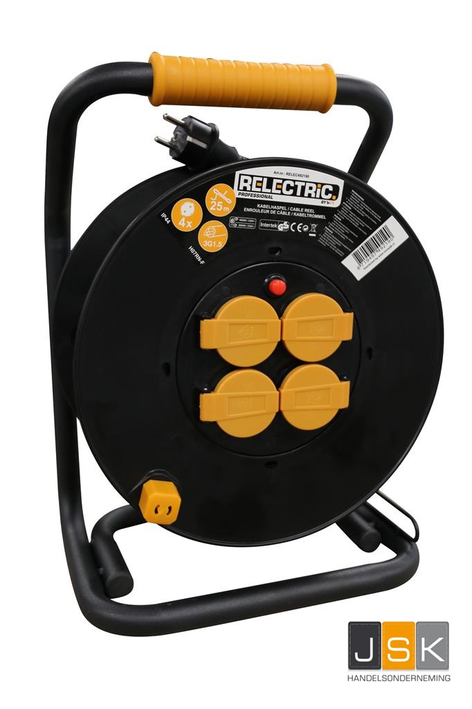 Professionele bouwhaspel / kabelhaspel, 25 meter 3G1.5 H07RN-F IP44 voorzien van thermische beveiliging - 492190