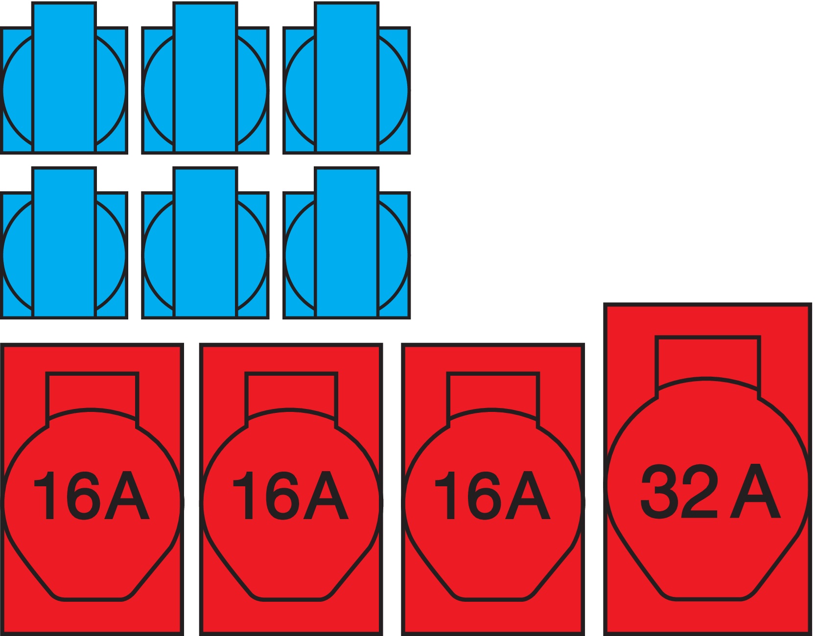 - 3x CEE contactdoos 16 A 400 V -> 1 C16 A 3-polig