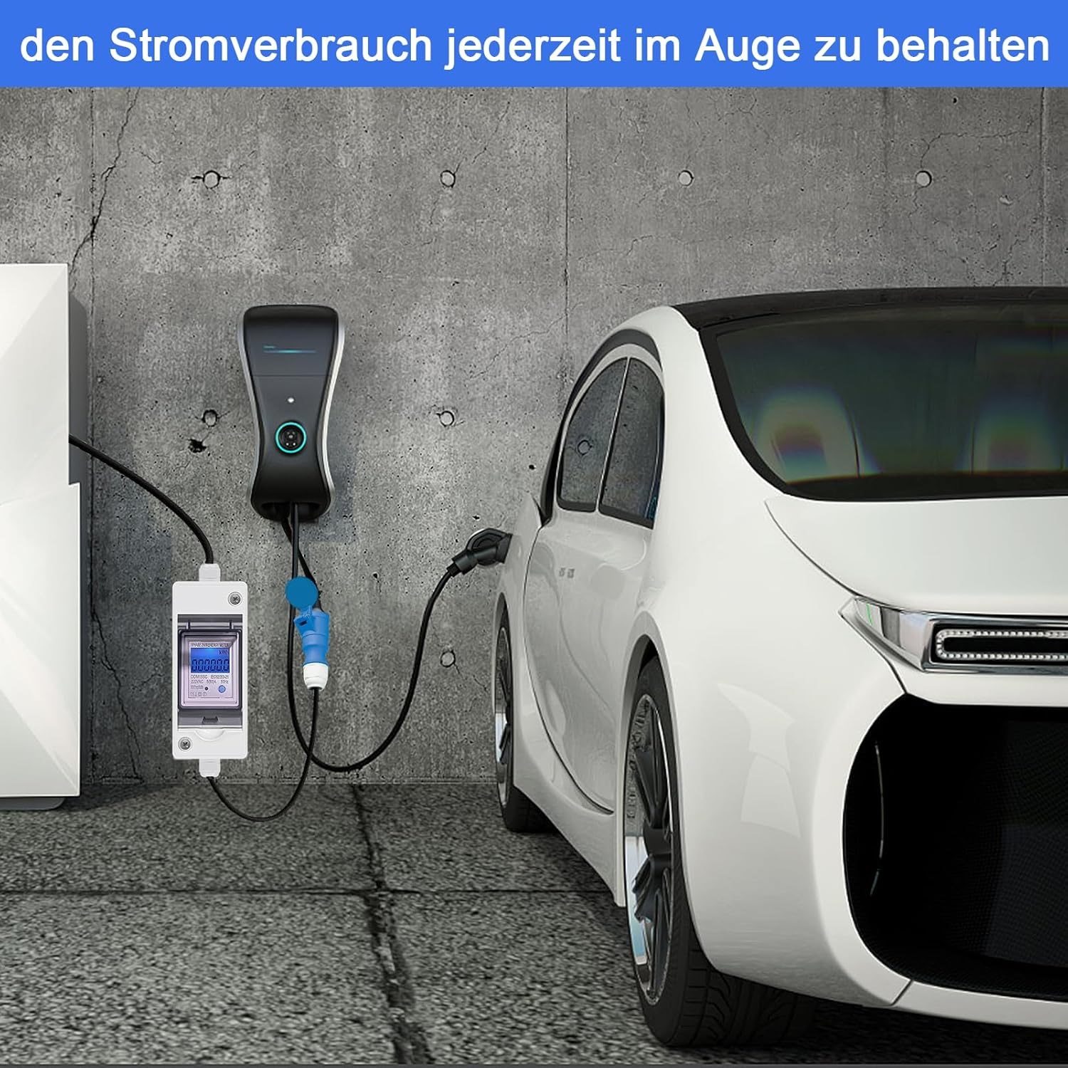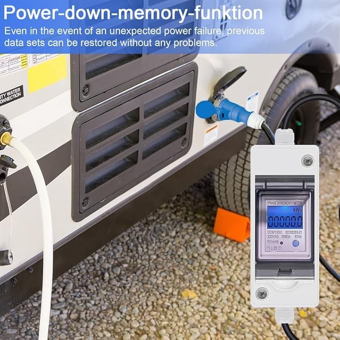Stroomverbruikmeter digitaal, 230V stroomverbruik, meter met led en reset, draagbaar, IP65 waterdicht, lcd digitale stroommeter voor campers, elektrische voertuigen (blauw)