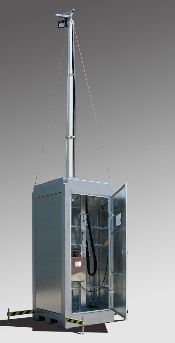 - Stevige stalen kast ter bescherming van mast en apparatuur