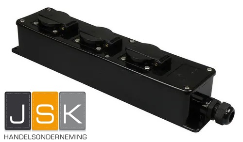 Slagvaste polyamide snoercentrale met 3 inbouw contactdozen 16A, 250V~ 2 polig met randaarde