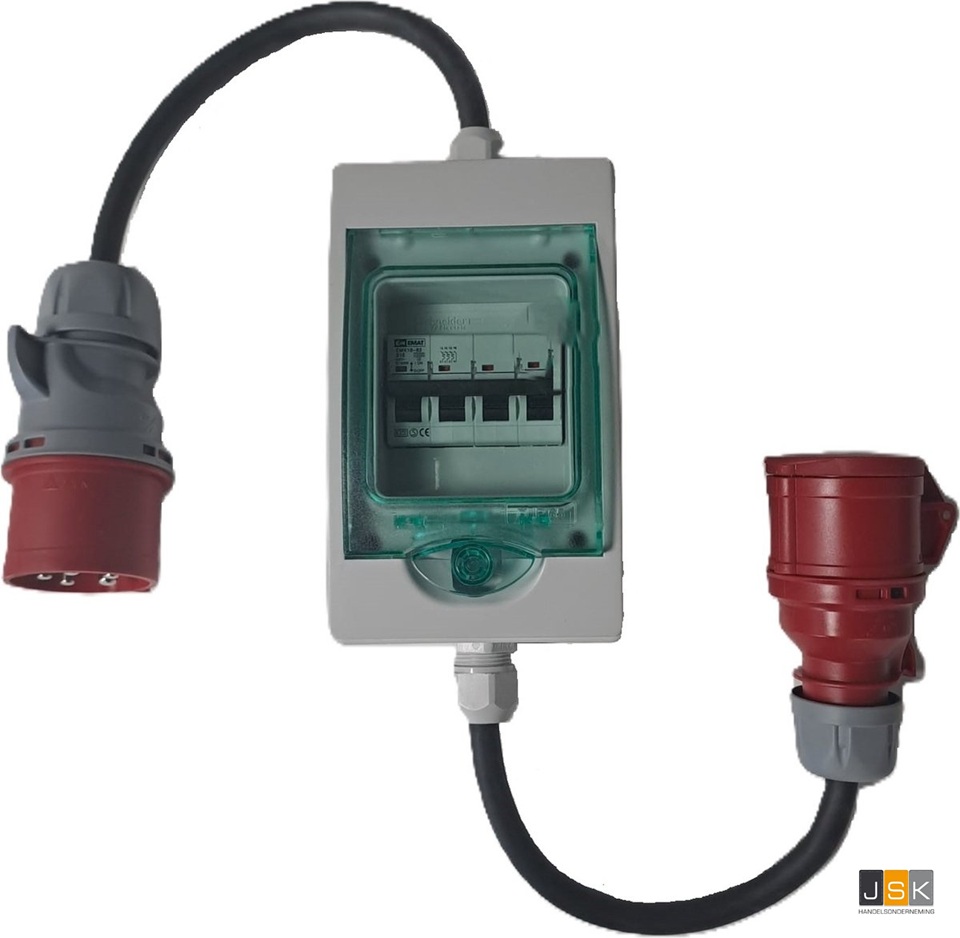 - CEE krachtstroomadapter, 6400 W van 32A 5-polig naar 16A 5-polig uitgerust met een 3-fasige zekering