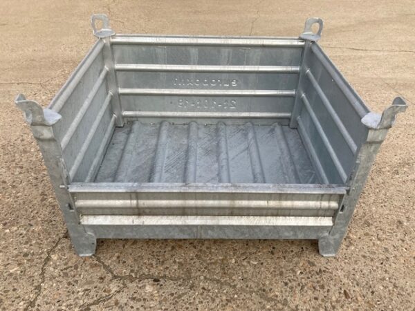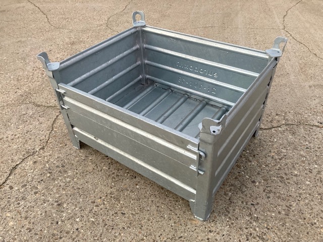 Verzinkte stapelbak met klep 100x80x50cm thermisch verzinkt met 4 hijsogen W.L.L. 2.000 kg